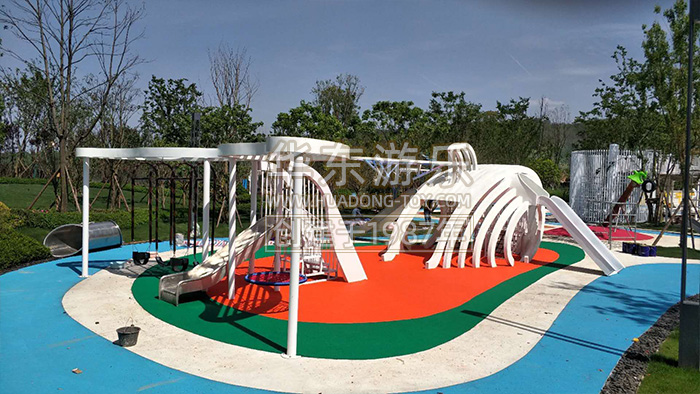 乐鱼运动游乐贵州贵阳龙里案例是一个以鲸鱼为主题的综合性项目,内置了脚踏喷泉,不锈钢滑梯、秋千、钻洞等游乐设备。
