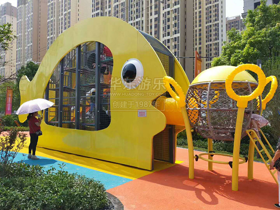 碧桂园城市之光案例是由乐鱼运动游乐自助设计的研发的以水中的鱼儿为主题而设计的游乐设备,该游乐设备具有爬网、不锈钢滑梯、攀岩设备等,设计新颖,主题明确,深受小朋友的喜爱。