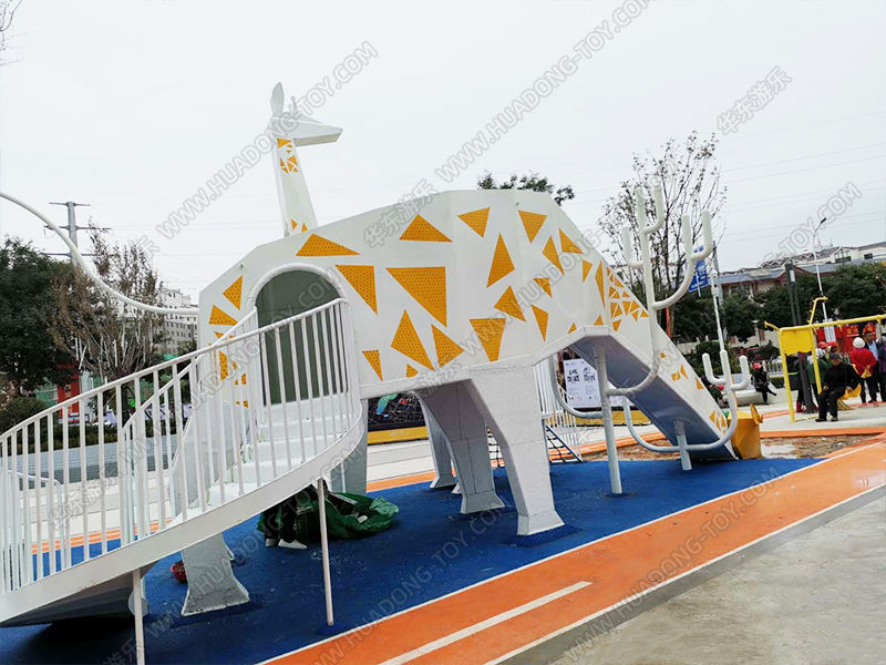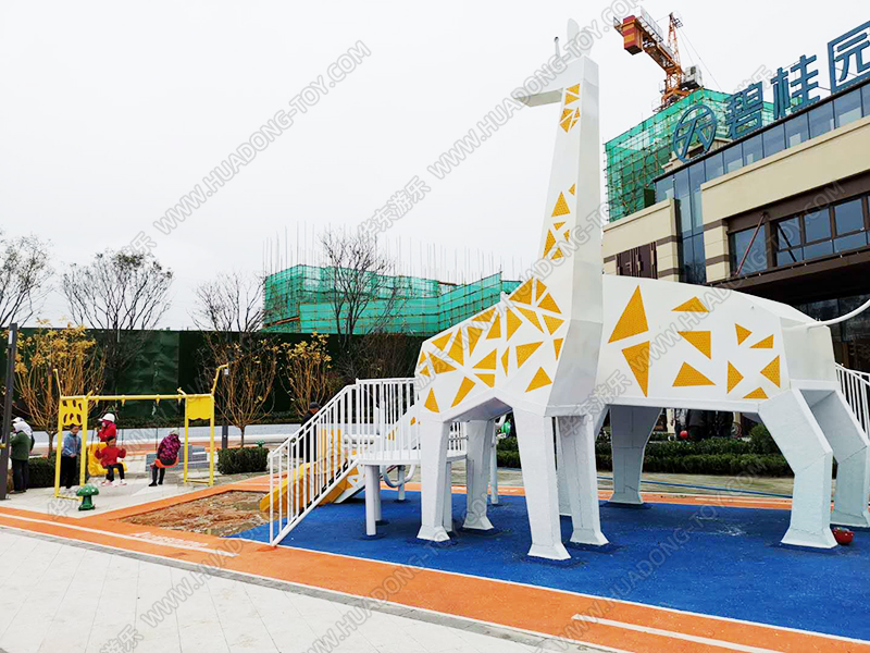 • 碧桂园天宸房地产项目是一个生活小区的休闲娱乐项目,该项目具有很好的主题性,采用以长颈鹿为主题,生动形象,具有很高的趣味性,观赏性,深受小朋友们的喜爱,项目中增加了乐鱼运动游乐生产设计的秋千组合,为生活区的人们提供了很好的休闲场地和设施。