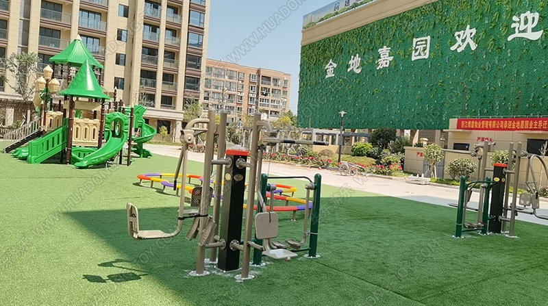 • 碧桂园金地嘉园项目是国内大型房地产项目,整个项目采用以环保的绿色为主,主体游乐设备采用绿色的森林系列大型滑梯组合,新增了摇摇乐,健身器材,万能秋千组合等游乐设备,不仅仅丰富了小区的休闲娱乐,也为小朋友玩耍提供了场所。