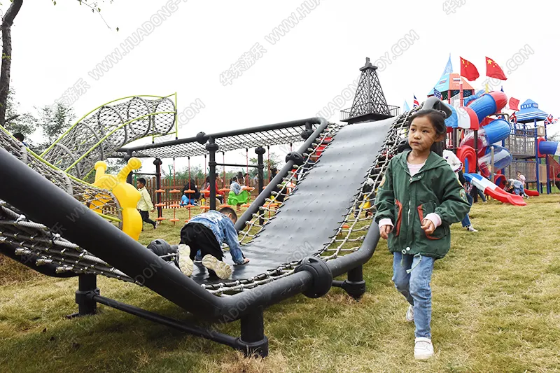 跨国梦想欢乐岛是乐鱼运动游乐自主研发的一款大型滑梯组合,是集合了攀、爬、钻、滑等多种功能,设置了爬网、钻洞、滑梯、攀爬墙、平衡桥等游乐设备,小朋友可以在欢乐岛上面像小松鼠一样自由的玩耍,尽情的游戏。