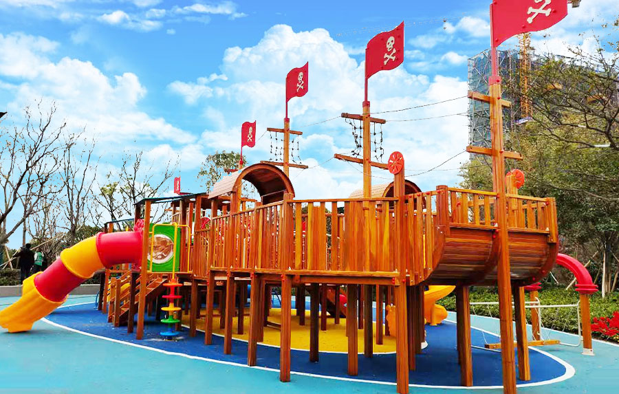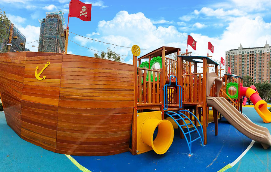• 非标木制滑梯组合案例采用海盗船的设计主体为原型设计,增加了大型滑梯组合以及攀爬、钻洞等功能,整个主体设备采用木制结构,乐鱼运动游乐生产的木制游乐设备具有颜色艳丽、外观漂亮,实用性强、经久耐用、安全性能好等特点,为小朋友的玩耍提供了一个很好的场所。