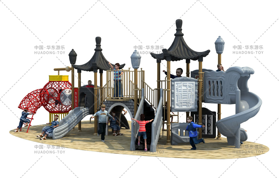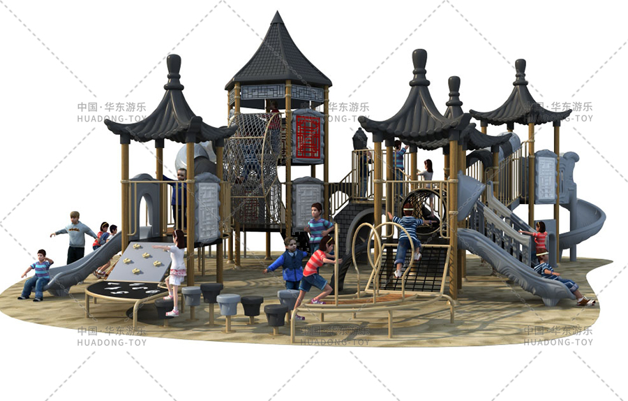 中国风系列来之我们研发部开发一种中国特色一中国元素——-中国趣味。中国风系列以苏州园林与徽派建筑为灵感,溶入现代建筑简洁、大方,明快与实用的风格,利用青砖黛瓦的微派建筑,景象别致的苏州园林,马头墙小青瓦亭台楼阁,高低错落,变化无穷。结合攀、爬、滑、钻、荡等功能,为孩子打造一个奇妙的游乐世界。孩子们穿梭其中,感受不一样的体验,积极培养孩子对中国传统文化的热爱,弘扬中国传统与亲身体验。
