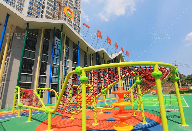 幼儿园配备攀爬绳网,是非常适合小朋友的,绳网攀爬高低起伏,需要小朋友手脚并用,锻炼身体各个部位,使他们身体更灵活,反应更敏捷。