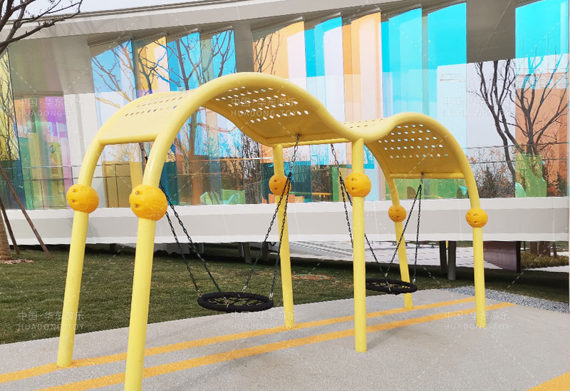 秋千也是必不可少的,小朋友们都有一个飞翔的梦想,相信我们小时候也是一样,总是想象自己遨游天空,秋千就是带给小朋友飞翔的感觉,荡起来的秋千伴随着小朋友银铃般的笑声,也是一副动态美景。