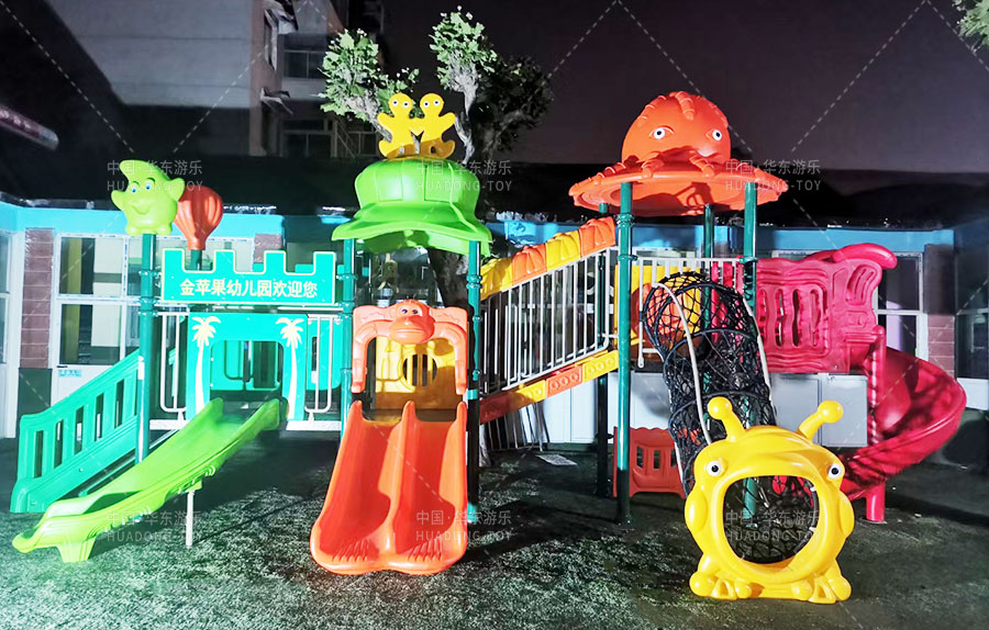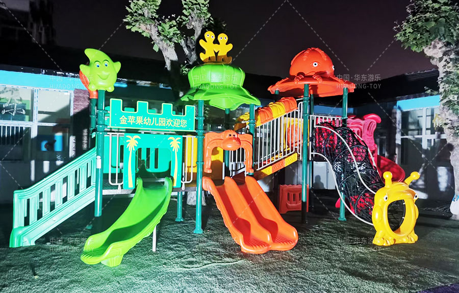 • 山东省济南市历城区金苹果幼儿园是一家由教育局批准的幼儿园,主要提供学前教育的服务和托管,此次学校选用的是由乐鱼运动游乐自主生产和研发的动物系列组合滑梯,该滑梯设置了网洞攀爬、S形滑梯、直行滑梯、爬梯等功能,独特的动物系列设计风格深受广大小朋友们的喜爱。