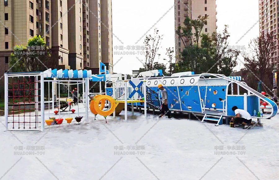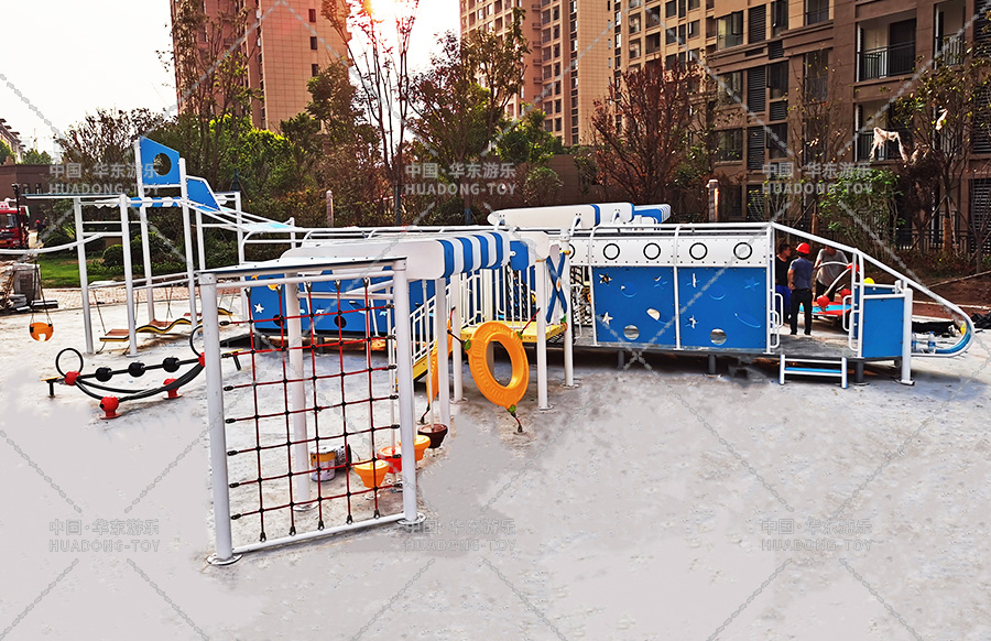 • 河南许昌龙腾北海腾飞花园游乐设备选用的是乐鱼运动游乐自主设计的游乐分别无动力游乐设备,整个场地以航天飞机为主题而设计,新增了 摇摇马,万能健身器,组合秋千、跷跷板等游乐设备,不仅仅丰富了小区的生活文化也为生活在该地区的人们提供了一个休闲娱乐的场所。