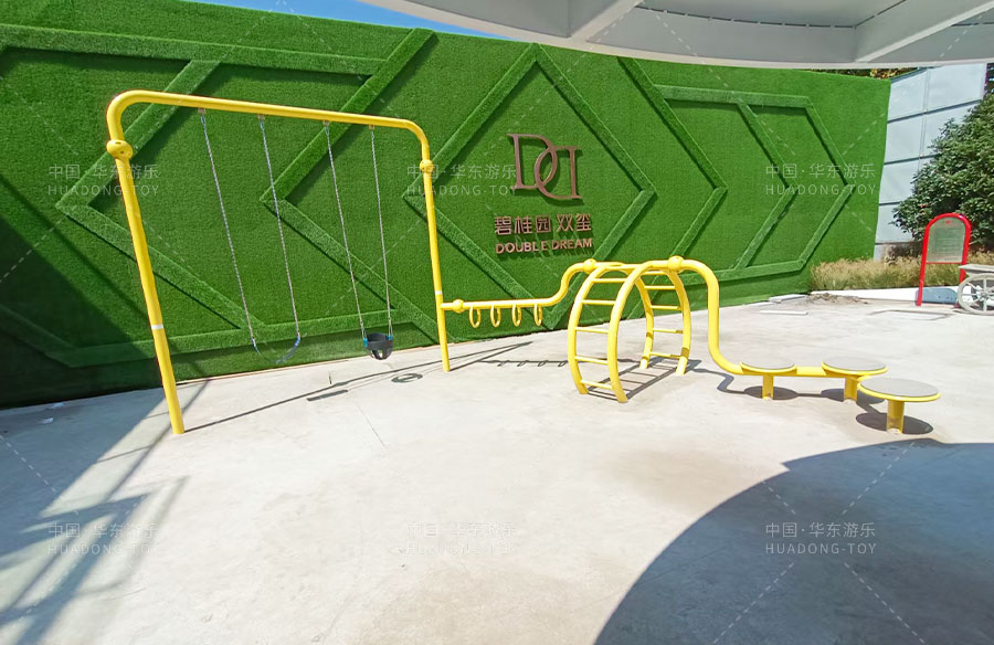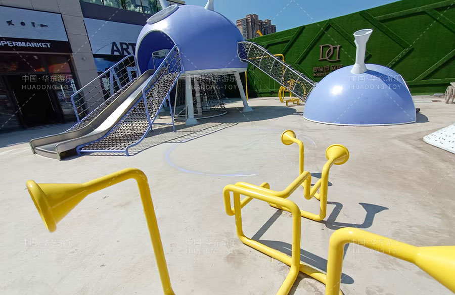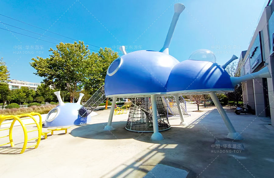• 此次项目采用的是乐鱼运动游乐自主设计的飞碟主题的游乐设备,新增了传声筒、爬网、儿童秋千、钻洞、不锈钢滑梯等功能。
