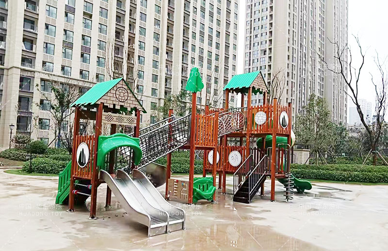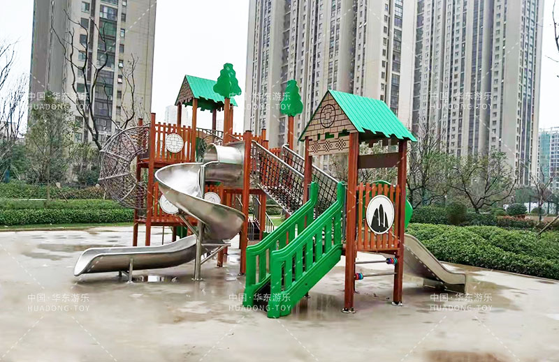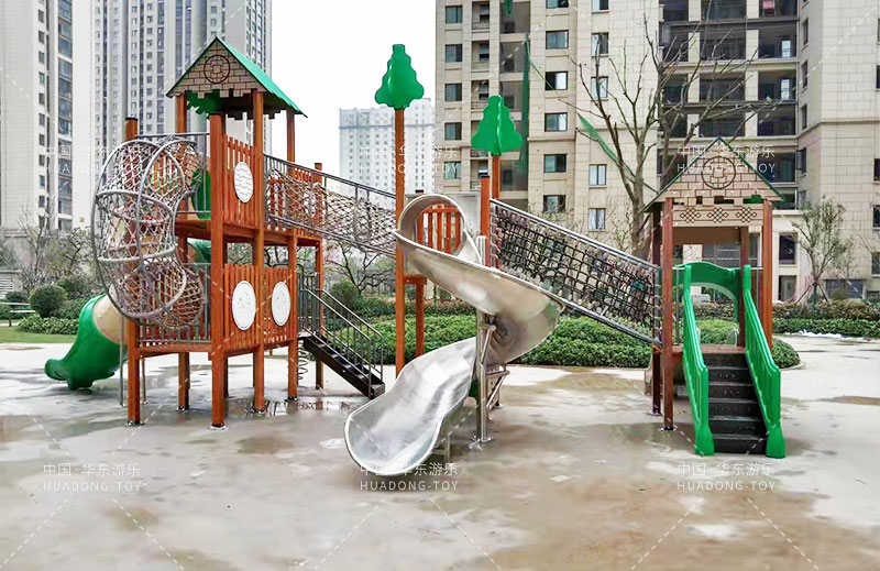 • 荣盛华府选用的是乐鱼运动游乐自主设计的具有攀爬网、U型爬网、不锈钢滑梯、网桥、滑桶为一体的综合性游乐设备。
