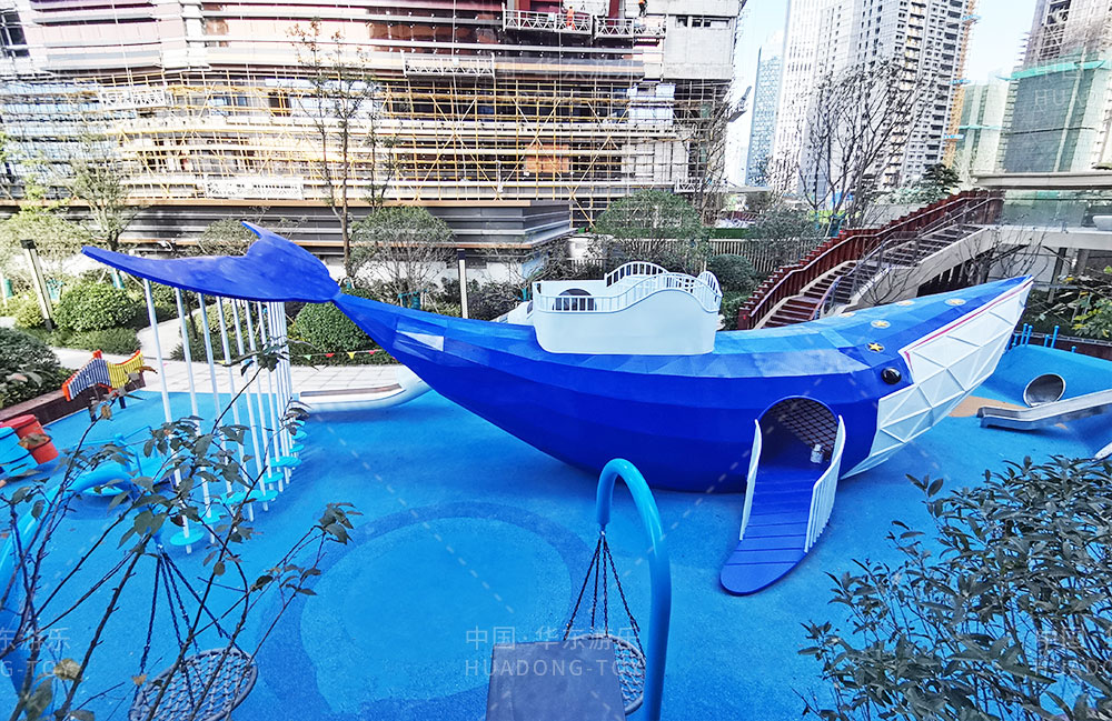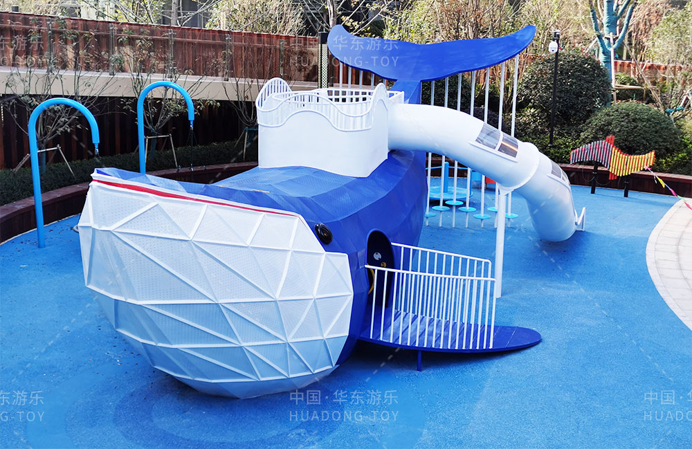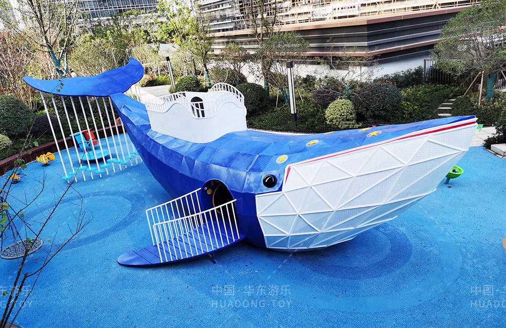 杭州萧山区奥景名邸项目是一个又乐鱼运动游乐自主研发和生产的非标定制系列游乐设备,整个项目采用蓝色的海洋为背景,大型的鲸鱼为主要娱乐设备,整个游乐场结合小区实际情况而设计,为生活在该小区的人们提供了 一个生活、休闲、娱乐的场所。