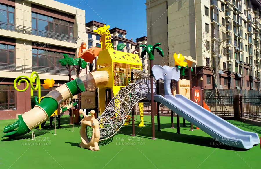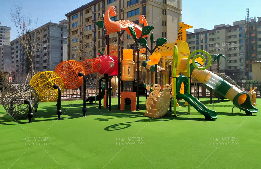 • 河北省唐山市京唐港开发区滨海华府幼儿园选用的是乐鱼运动游乐自主研发的动物系列滑梯、该滑梯具有攀爬、滑梯、钻洞、爬网、等功能,能够锻炼小朋友的四肢臂力,很好的让小朋友在玩耍中健康快乐的成长。