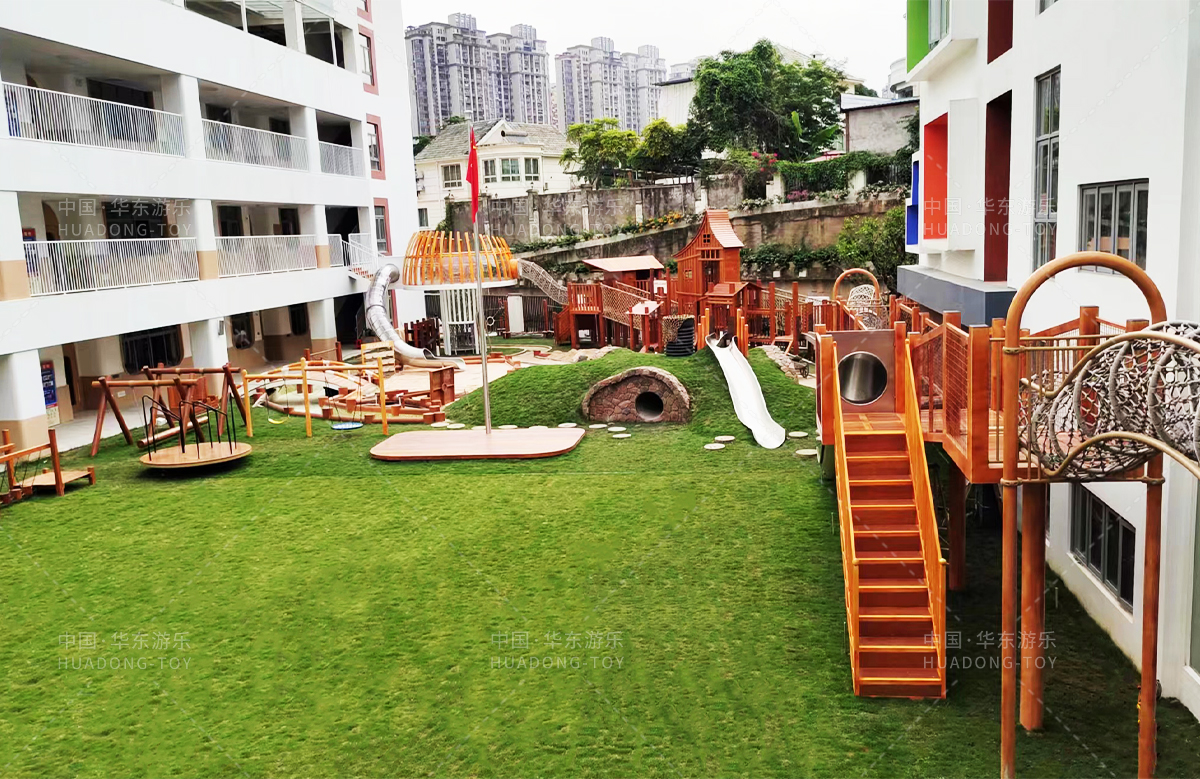 • 高峰幼儿园是一个专业的学前教育培训机构,此次选用的是乐鱼运动游乐设计和生产的木制非标定制的游乐设备,设计了具有攀爬网、钻洞、秋千、木制拓展、木制小屋、不锈钢滑梯等功能的游乐设备,丰富的功能、优质的设备、让整个校园充满了生机与活力。