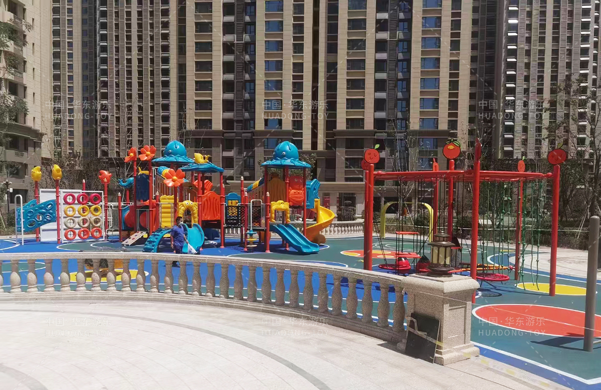 • 瑞城嘉园选用的是乐鱼运动游乐自主研发和生产的游乐设备,整个游乐场添置了动物系列滑梯、森林系列滑梯,万能秋千组合等游乐设备,为生活在这里的人民提供了一个休闲、娱乐、遛娃的场所。