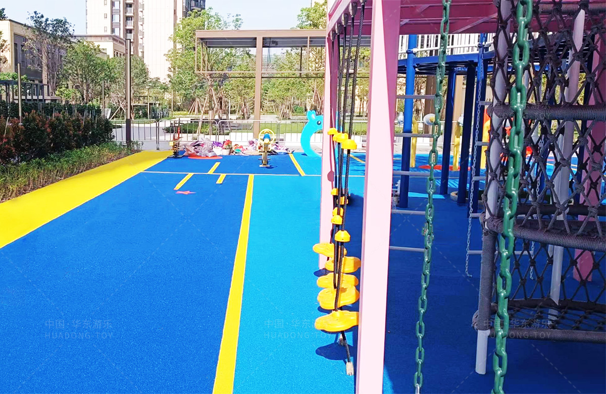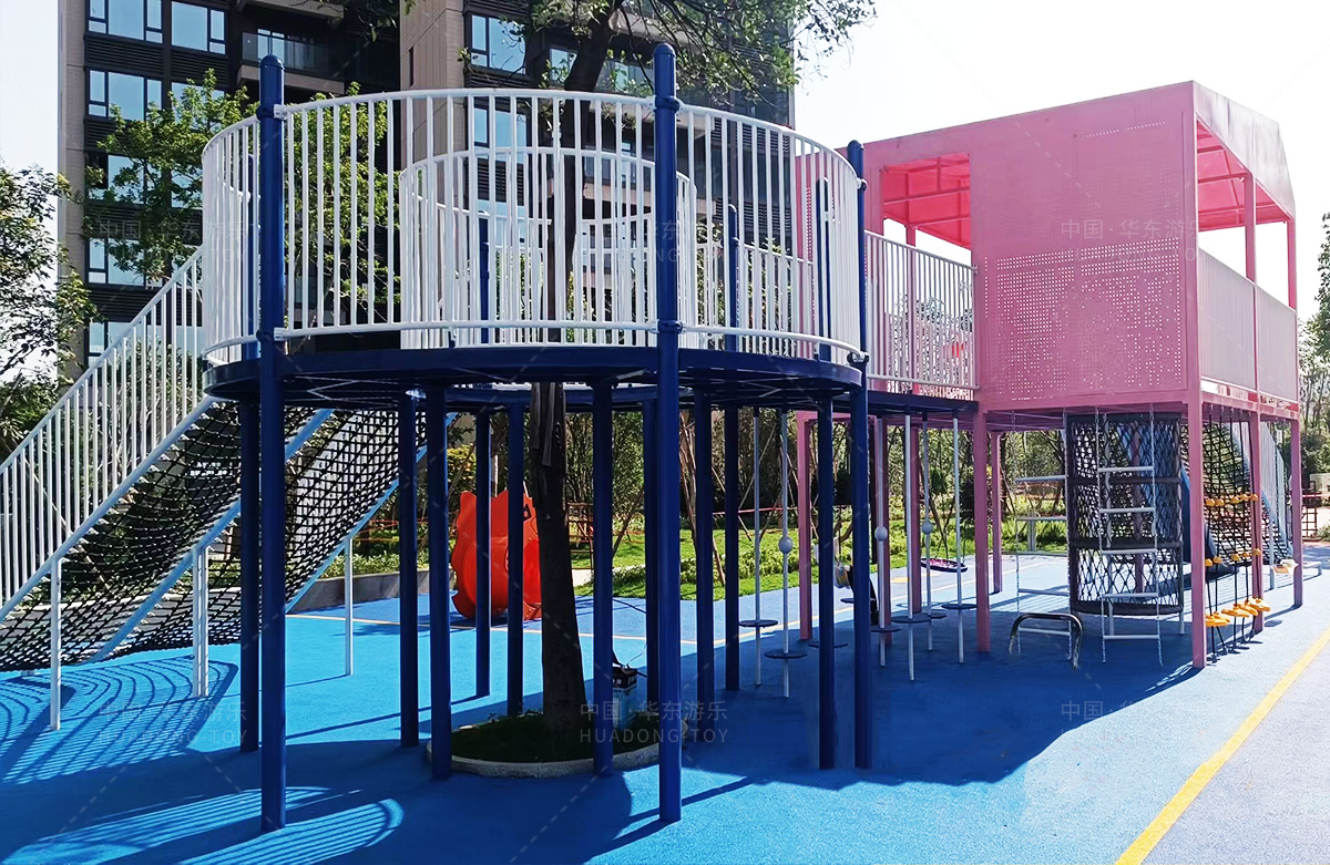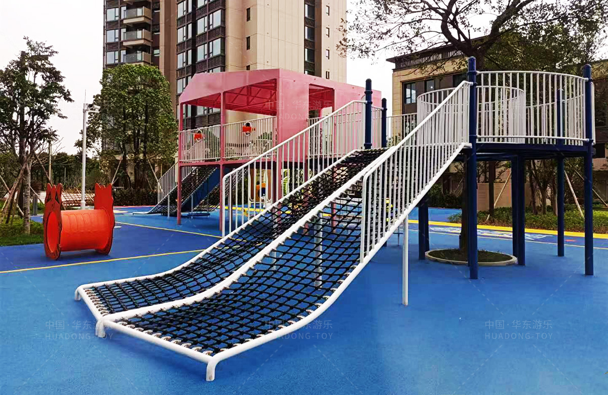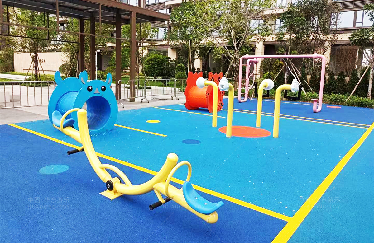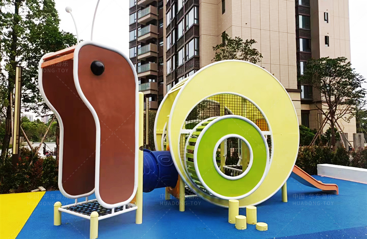 该房地产选用的是乐鱼运动游乐设计和生产的非标定制系列的游乐设备,分别设置了跷跷板、摇摇乐、钻洞、传声筒、蜗牛主题组合滑梯,以及具有钻洞、攀爬网、攀爬绳、攀爬梯等功能为一体的空中小屋的游乐设备,该游乐园的建设不仅仅丰富了小区人们的休闲生活,还为小朋友提供了一个休闲、娱乐的场所。