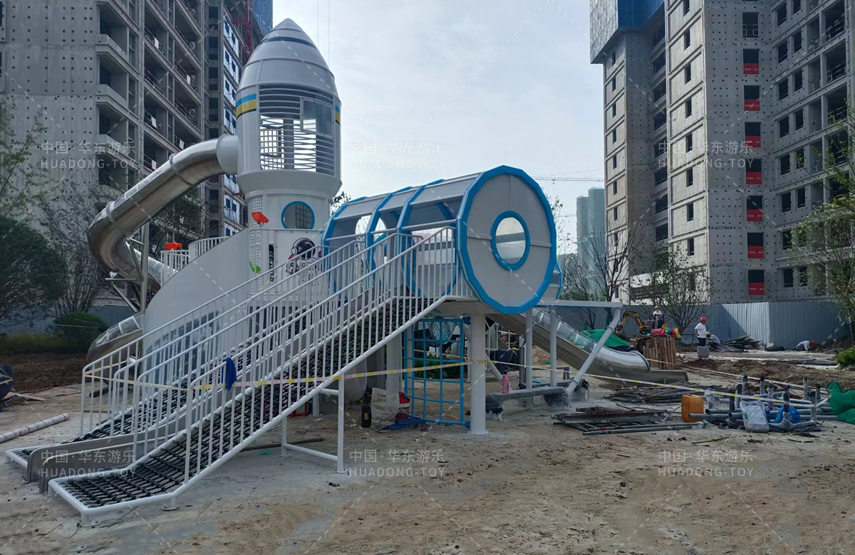 • 安徽省亳州市涡阳县荣徽上河郡选用的是乐鱼运动游乐自主研发和生产的以航天飞机为主题的大型非标定制的游乐设备,是一款具备了攀爬网、攀爬梯、旋转滑筒、儿童摇摇乐为一体的综合性儿童游乐场。