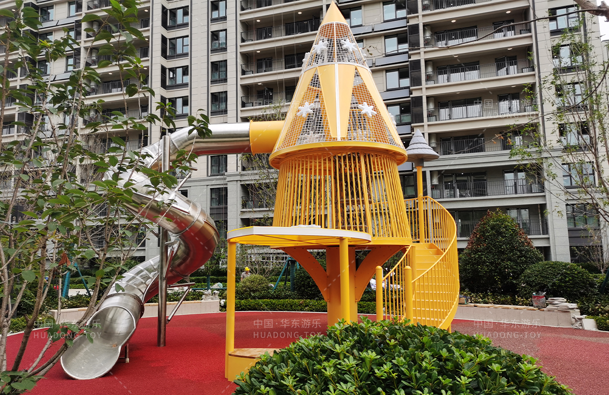 华润置地万象府选用的是乐鱼运动游乐自主研发和设计的以森林的大树为主题的非标定制游乐设备,该设备是一款具备了攀爬网、旋转走梯、旋转滑筒等功能为一体的综合性游乐设备,该游乐场的设置不仅仅为小朋友提供了一个很好的玩耍场所,也为生活在这里的人民提供了一个休闲娱乐的场所。