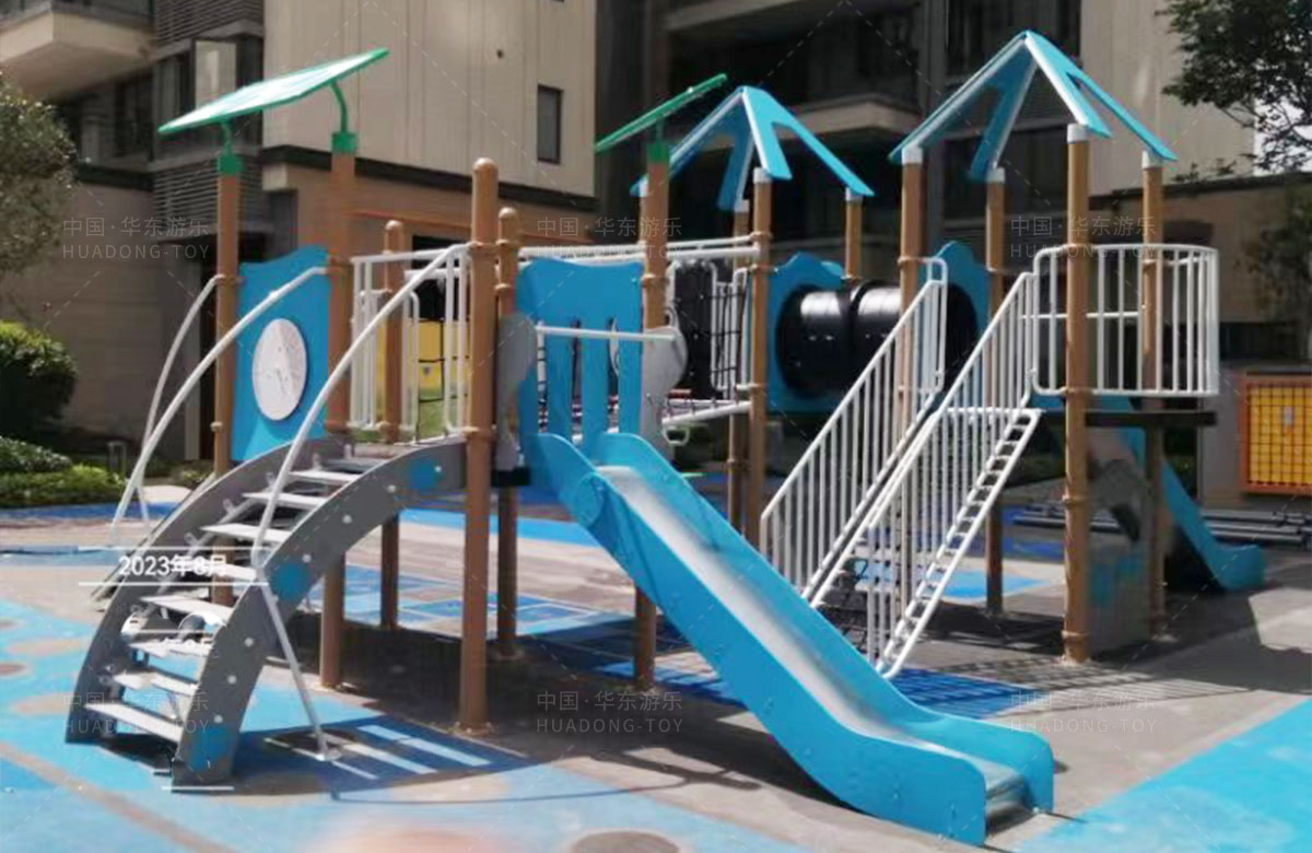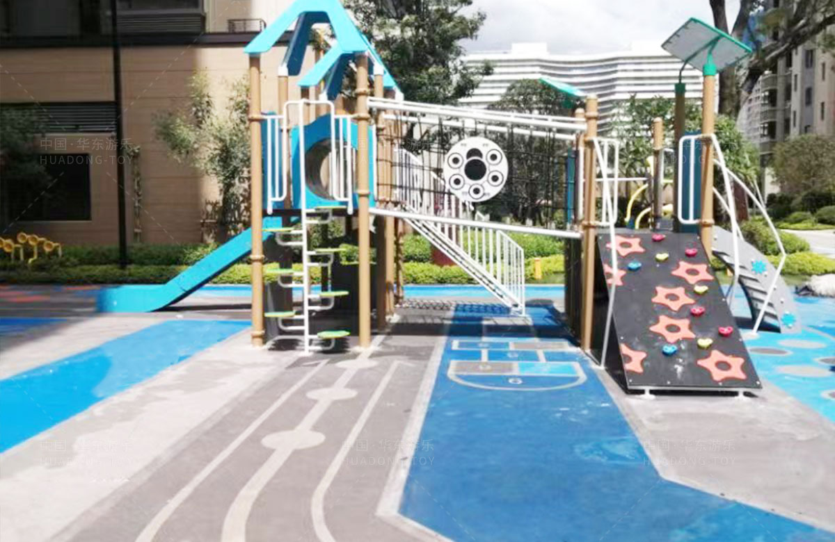 • 该项目选用的是乐鱼运动游乐自主研发和设计的PE板系列组合滑梯,该滑梯是一款具备了攀爬墙、攀爬网、攀爬梯、空中网桥、不锈钢滑梯等功能为一体的综合性游乐设备,除此之外还设置了小朋友喜欢的传声筒、攀爬墙、翻翻乐和成年健身器等设备,不仅丰富人们的休闲生活,也为该小区增加了更多的生机与活力。