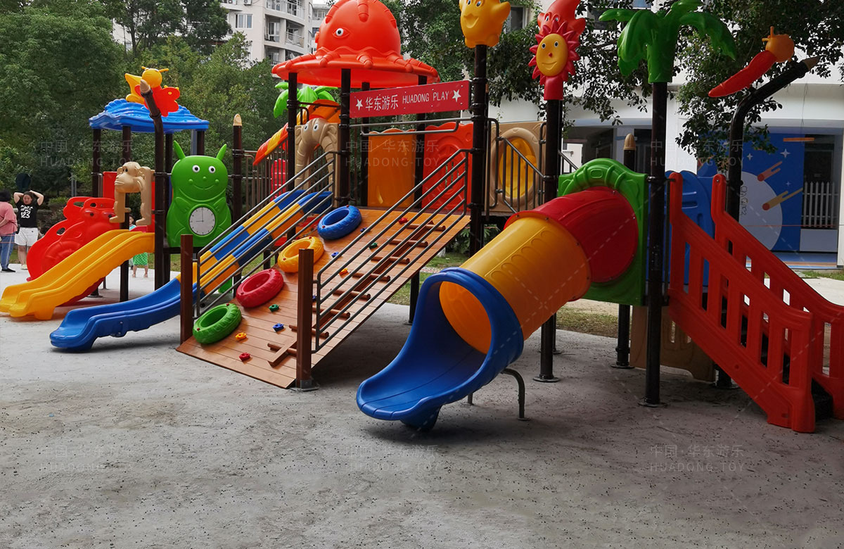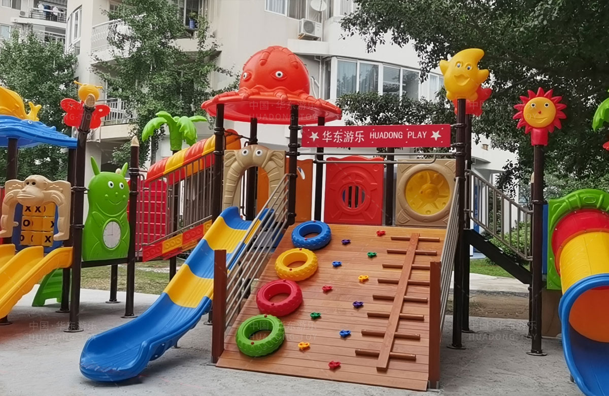 该小区选用的是乐鱼运动游乐自主研发和设计的大自然系列组合滑梯,是一款具备了攀爬网、攀爬梯、直行滑梯、滑筒等功能为一体的综合性游乐设备,能够很好的为小朋友提供休闲娱乐的场所。