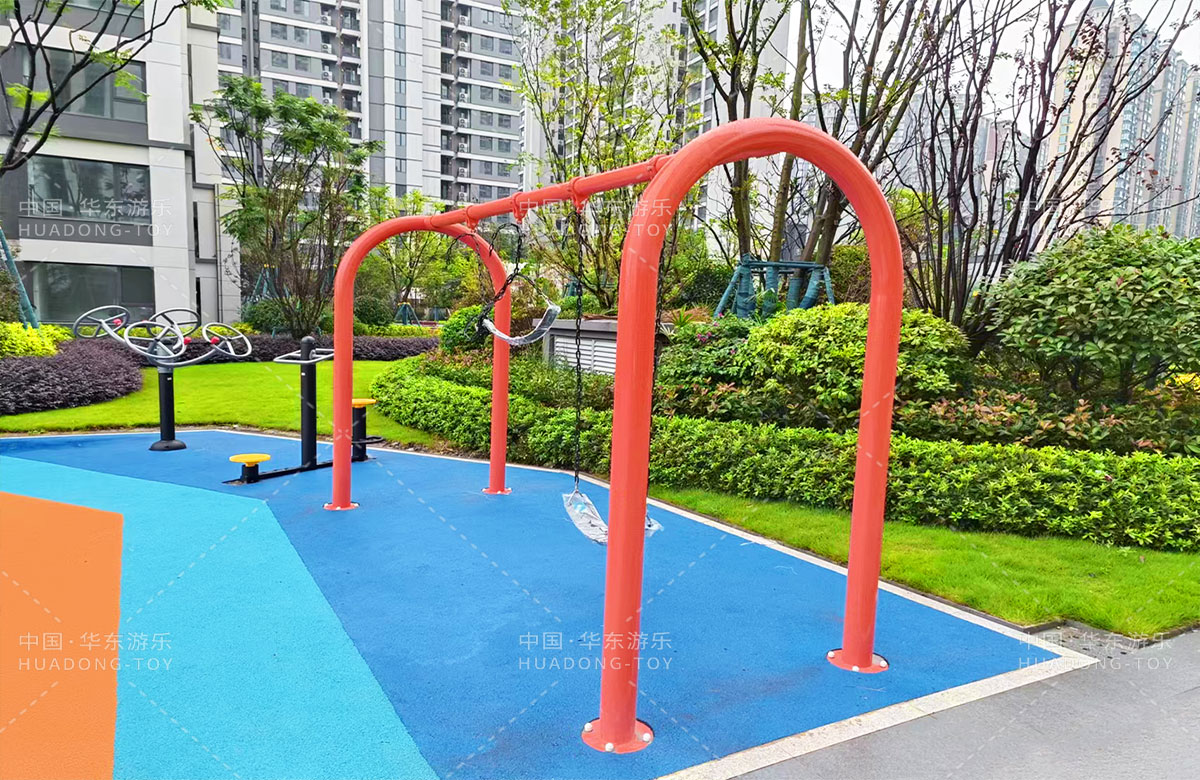 四川省成都市新城林屿溪选用的是乐鱼运动游乐自主研发和设计的非标定制系列的游乐设备,为了更多让小朋友们有一个玩耍的场地,整个游乐场分别设计了儿童摇摇乐、儿童秋千、成人健身器、趣味迷宫、平衡吊桥、旋转椅、象鼻组合滑梯等游乐设备。