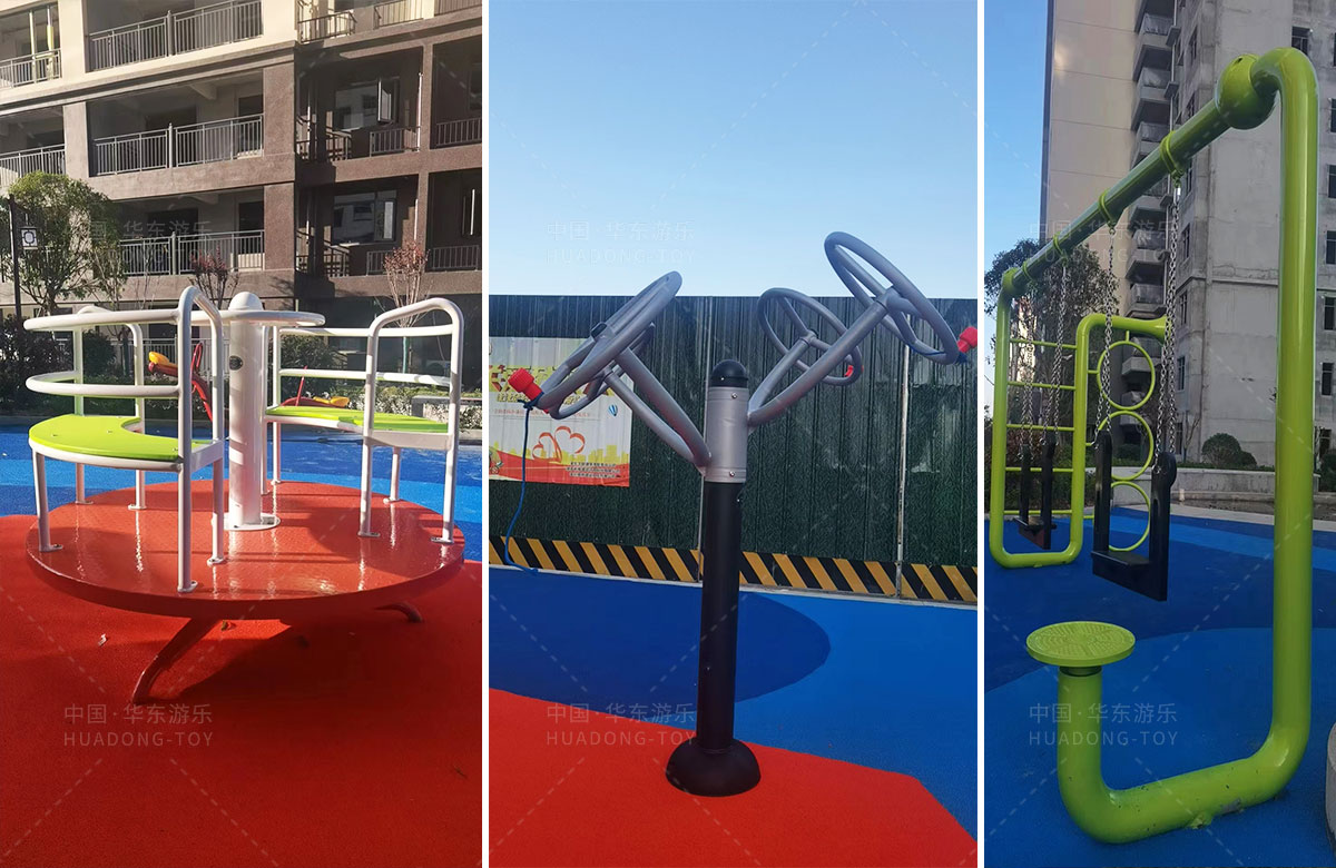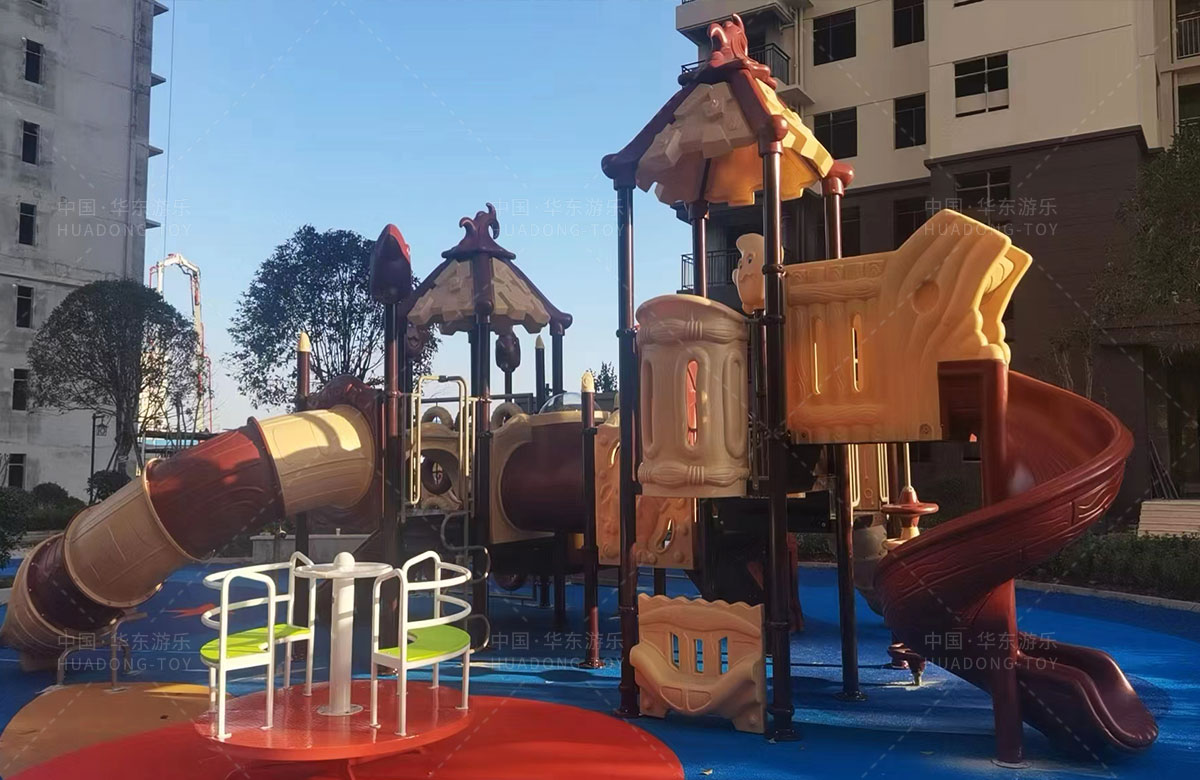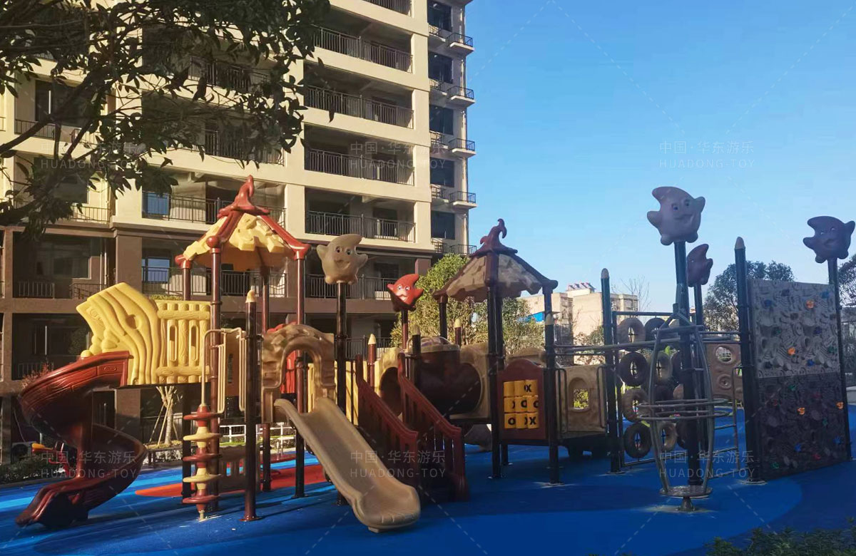 • 湖北黄冈市浠水县星河荟小区选用的是乐鱼运动游乐自主研发和设计的魔法屋系列组合滑梯,同时为了更好的满足全龄人群的健身和需求还配备了漫步机、太极手推器、吊环等户外健身器,不仅仅满足了孩子们的游玩需求,也为当地的人提供了一下休息、娱乐、健身、遛娃的场所。
