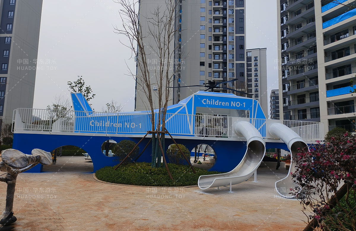 江西省上饶市碧桂园是一家高端的生活服务小区,此次选用的是乐鱼运动游乐自主研发和设计的直飞机主题的非标定制游乐设备,分别设置了大型滑筒、攀爬网、攀爬梯、钻洞、攀爬墙、大型观光廊架等功能,卡通的造型、齐全的功能、深受孩子们的喜爱,除此之外还添置了各种类型的健身器、儿童秋千、儿童摇摇乐、旋转椅等游乐设备,不仅丰富了小区的生活,也为老人提供了一个很好的健身场所。