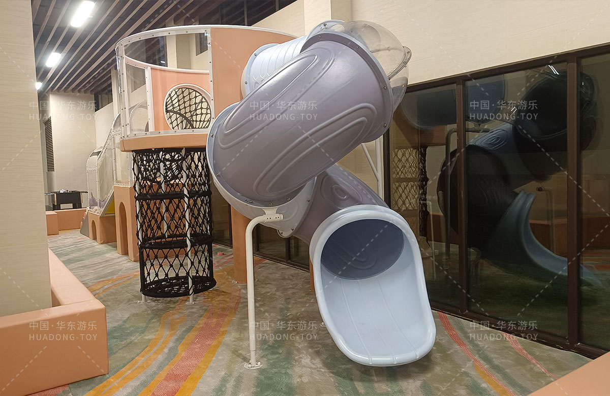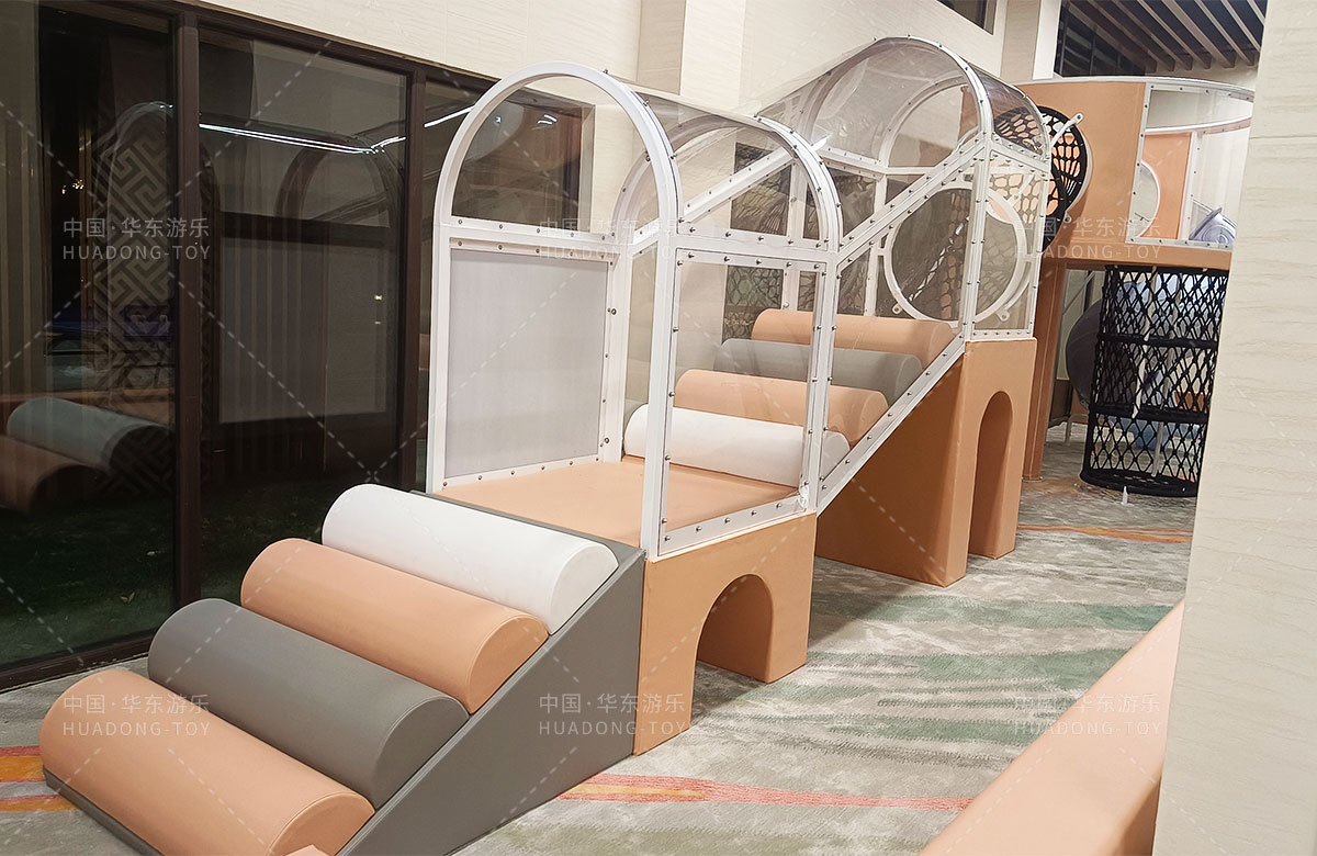 • 该项目选用的是乐鱼运动游乐生产的室内淘气堡系列产品,整套设备集合了攀爬网、钻洞、攀爬梯、旋转滑筒等功能,除此之外还设置了小朋友们喜欢的毛毛虫钻洞,儿童台球、乒乓球、桌面足球等设备,让整个售楼处变得更加的充满生机与活力。