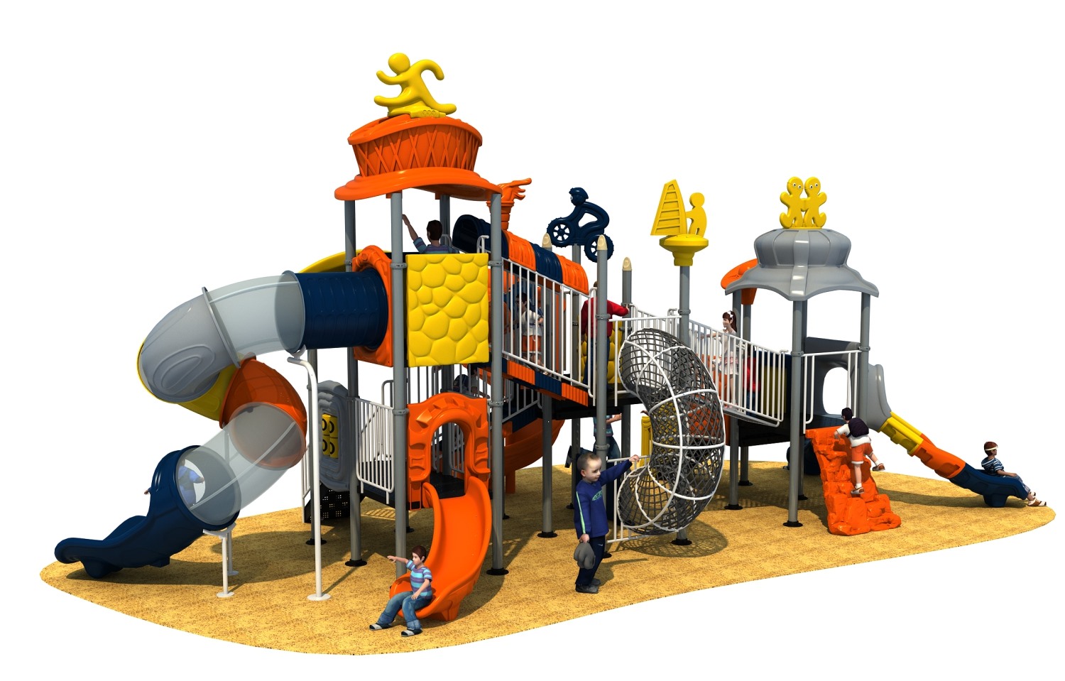 • 赛事系列游乐设备是乐鱼运动游乐根据常见的足球、垒篮球体育等赛事而自主研发和设计的组合滑梯,它是一款能够引导孩子们在玩耍时小朋友之间应该互相帮助、相互鼓励的无动力游乐器械,也是一个具备教导孩子们学会通过自己的努力取得最终胜利而敢于拼搏和挑战的游乐设备,卡通的造型、生动的形象让小朋友在玩耍的过程中有一个愉快的童年。