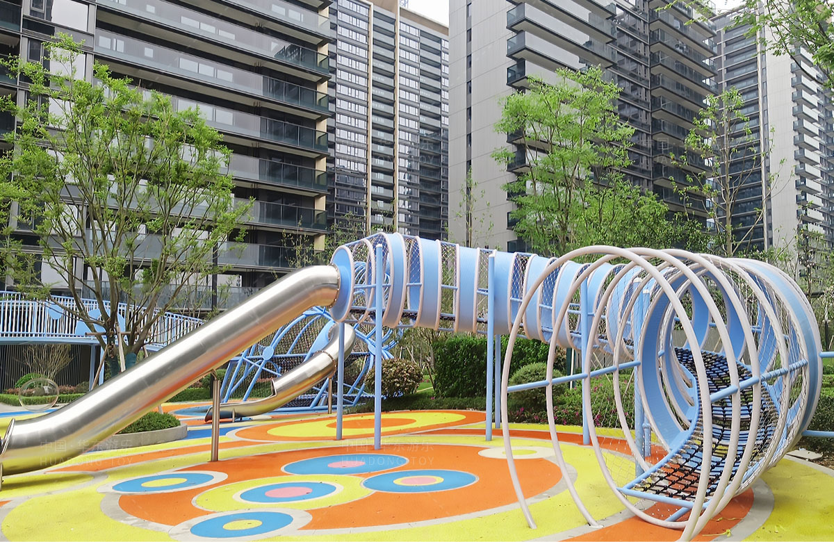 温州德信是一家高端居民小区,为了更好的提供高端的服务,该小区选用的是乐鱼运动游乐自主研发和生产的以“田螺公主”为主题的综合性游乐园,设置了孩子们喜欢的钻洞、攀爬、秋千、摇摇乐、翻翻乐、不锈钢滑梯、攀爬网等功能的游乐设备,不仅丰富了小区的生活,也为孩子们的玩耍提供了一个很好的游乐场所。