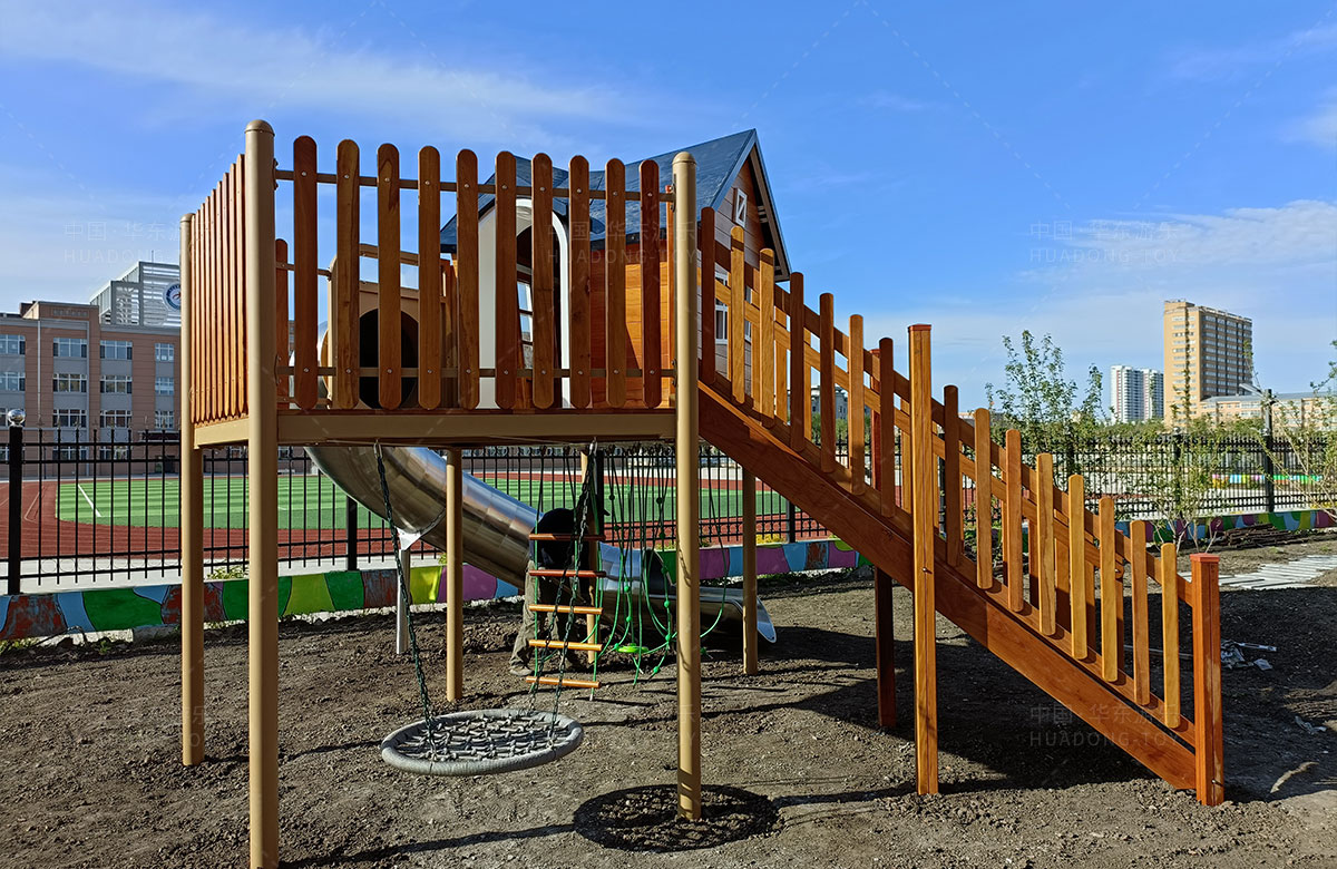• 该项目选用的是乐鱼运动游乐自主研发和设计的欧韩城堡组合滑梯,根据整个项目场地而设计的木质组合滑梯、微地形、趣味沙池,以及孩子们喜欢的儿童秋千、种植乐园等活动区,很好的为小朋友提供了一个休闲娱乐的场所,同时也教导孩子们应该热爱劳动,通过自己的努力获得丰收的喜悦。