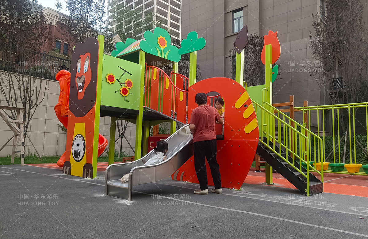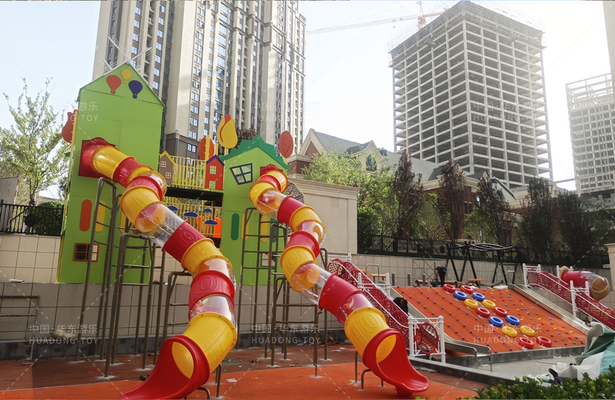 德福房地产骏景御园选用的是乐鱼运动游乐自主研发和生产的趣味小屋为主题的游乐设备,整个场地分别设置了小朋友喜欢的组合滑梯、旋转座椅、不锈钢滑梯、组合秋千、各种类型的拓展游乐设备,不仅仅丰富了小区的生活,也为孩子们的健康成长提供了保障。
