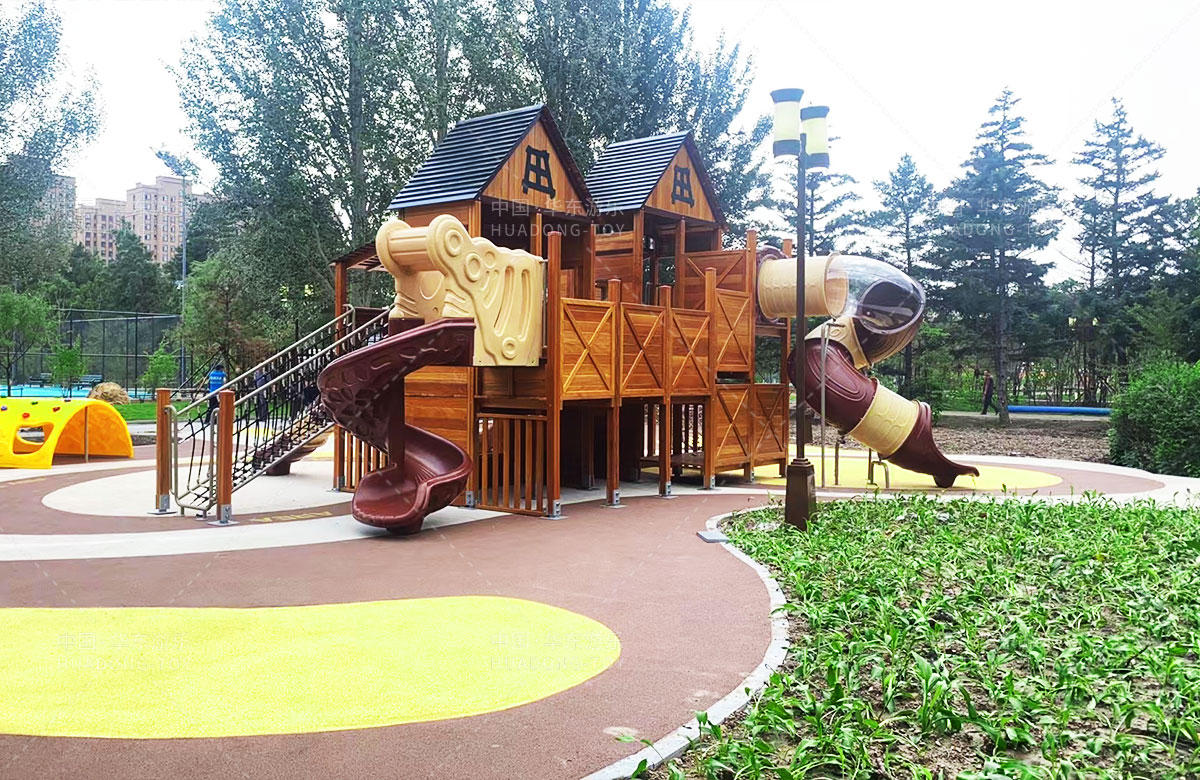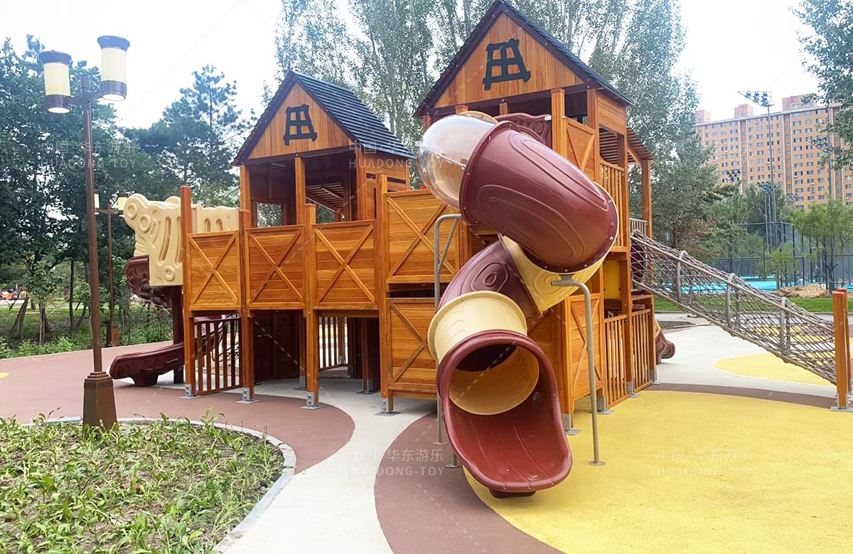• 吉林省白城市洮北区兵器城小区是一个综合类型的居民小区,该小区设置了各种类型的 游乐设施,为了更好的为人民提供一个休闲娱乐的场所,此次选用的是乐鱼运动游乐自主研发和设计的木质小屋系列的组合滑梯,除此之外还设置了孩子们喜欢的各种攀爬游乐设备。