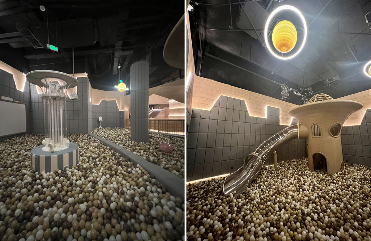 • 新疆草原大酒店儿童游乐园是一个主题性的旅游酒店,此次选用的是乐鱼运动游乐自主研发和设计的以星空探险为主题的室内淘气堡儿童游乐园,整个游乐园分别设计了海洋球、互动媒体、旋转星球、宇宙飞碟、太空球等功能,整个游乐园灯光与设备交相辉映,孩子们仿佛置身于浩渺的星空世界。